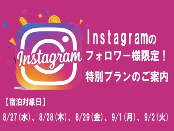 日頃の感謝を込めて、インスタグラムフォロワー様だけの特別な宿泊プランをご用意しました!