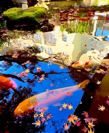 赤や黄色の葉が風に揺れ、池へそっと落ちていく姿がとても美しい季節になりました🍂✨水面に浮かぶ紅葉と、ゆったり泳ぐ鯉たち🐟まるで絵の中に迷い込んだような、静かで穏やかな時間が流れています。秋の松風苑で、ほっと心がほどけるひとときを…🍁🌿