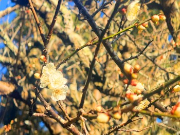 駐車場側の「熱海桜」は間もなく見頃を迎え 庭園の「白梅」も可憐に咲き始めています🌸
