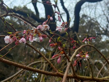 当苑の「大枝垂れ桜」が、いよいよ咲き始めました!🌸