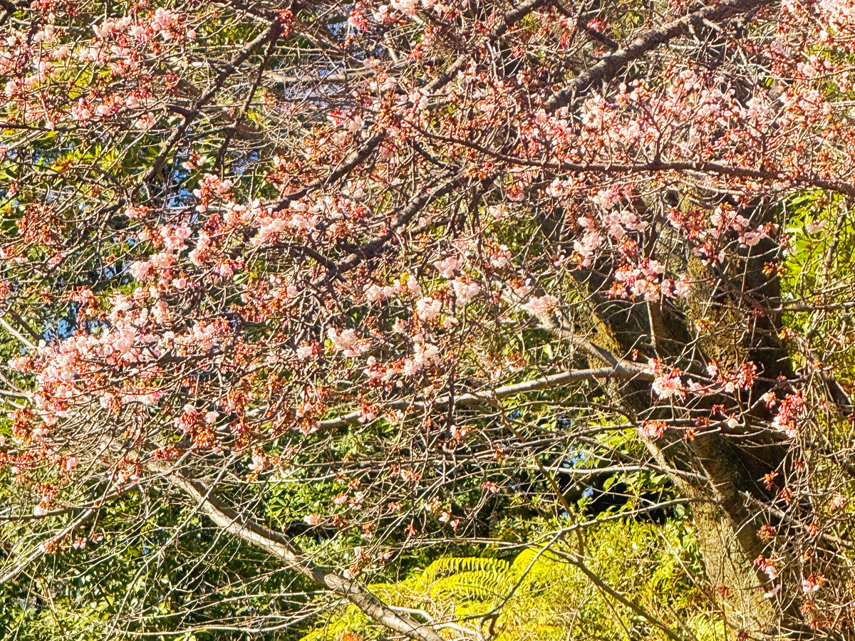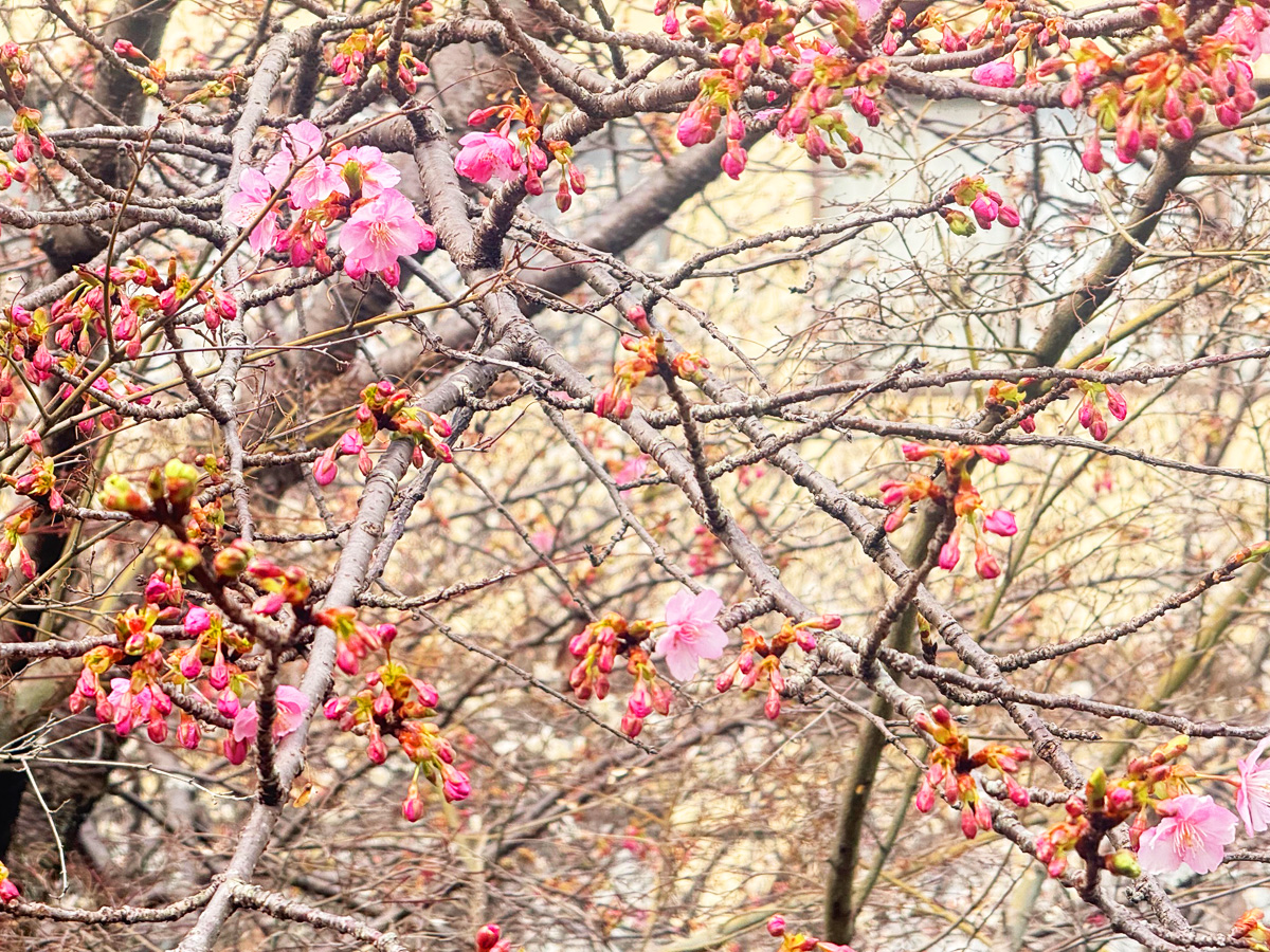 本日1月17日、当苑の庭園で「河津桜」がついに開花いたしました!✨駐車場側の「熱海桜」もちょうど見頃...